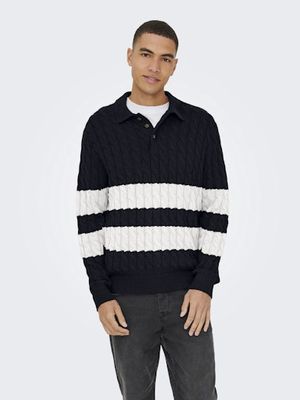 ONLY & SONS KICKER LIFE RELAXED CABLE POLO KNIT